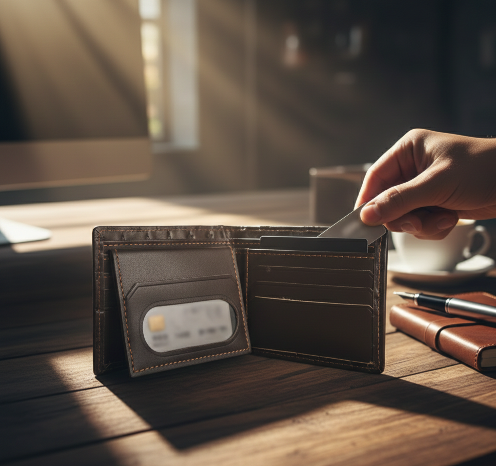 Slim & Spacious: Jeb mein bhari mehsoos nahi hota, lekin cards aur cash ke liye kaafi jagah hai.